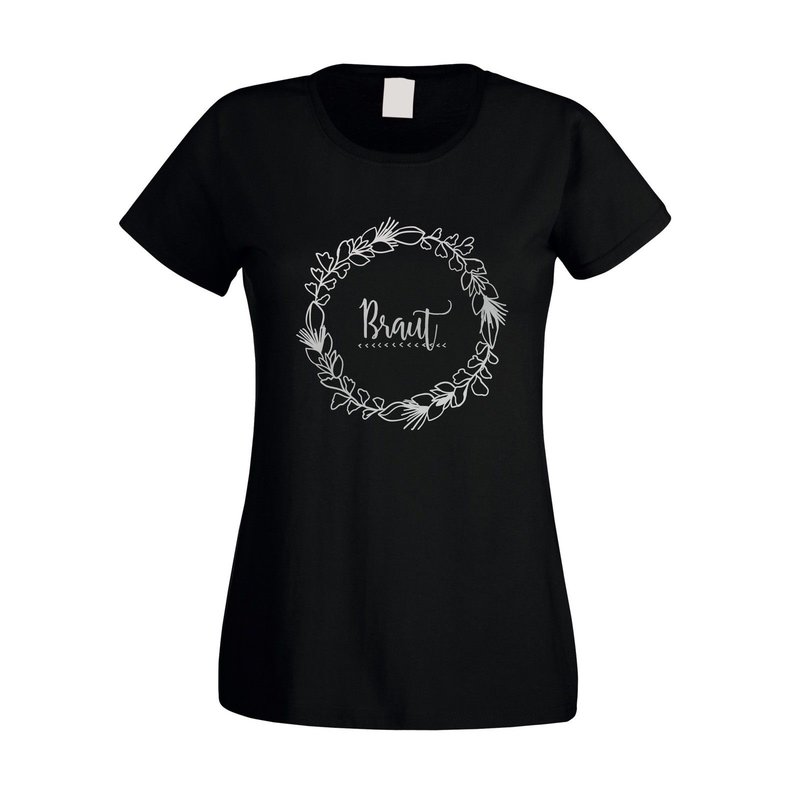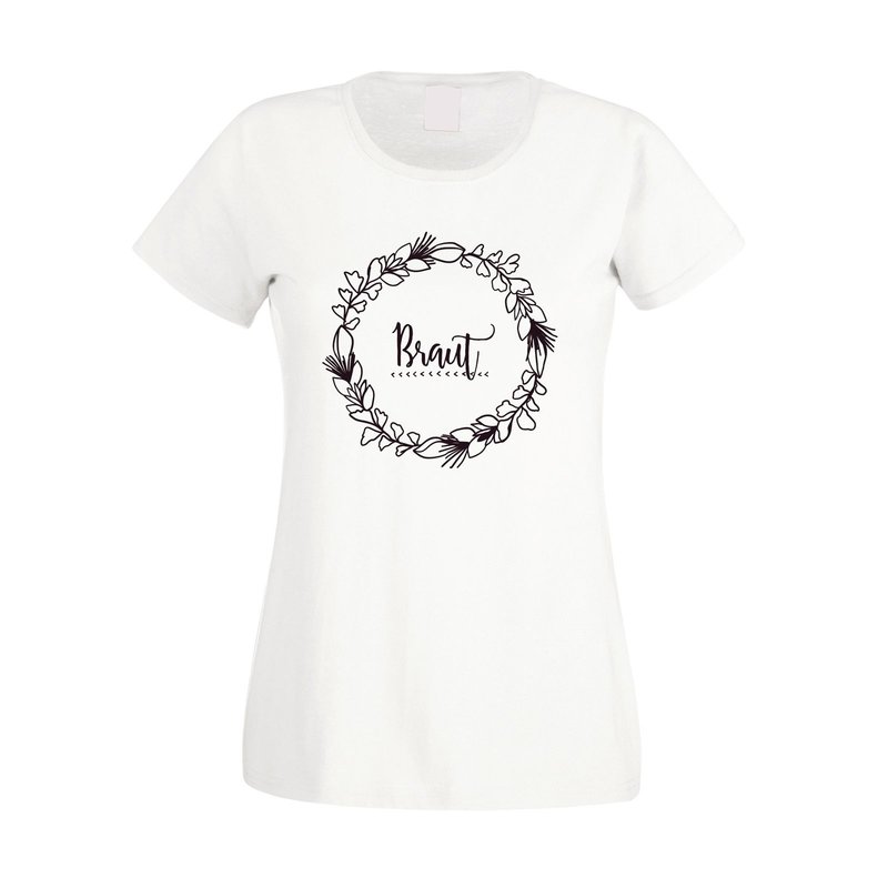 Braut - Blumenkranz - JGA Damen T-Shirt - Junggesellin Hochzeit Party Feiern JGA weiss-schwarz XXL