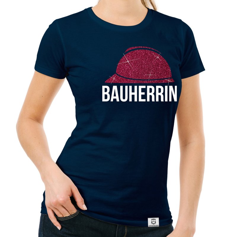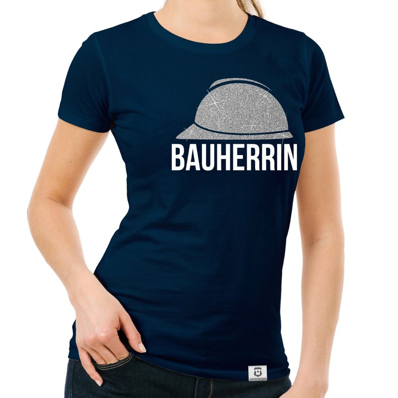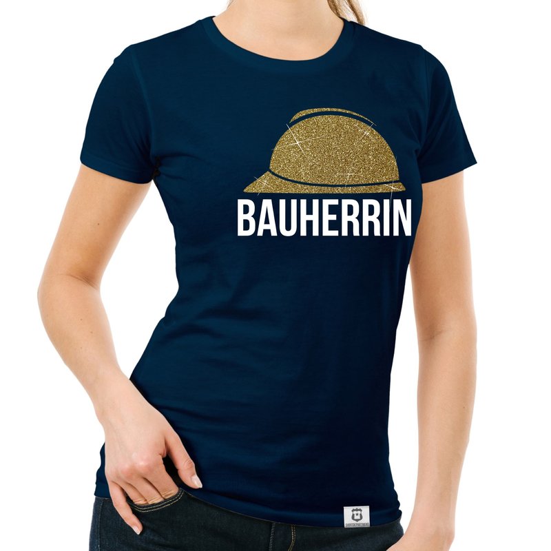 Damen Bauherrin Helm Shirts - Rundhals und V-Neck - Glitzer Rundhals dunkelblau-goldglitzer S