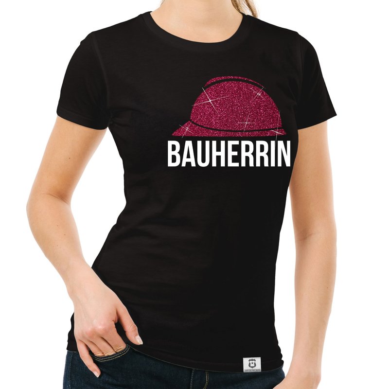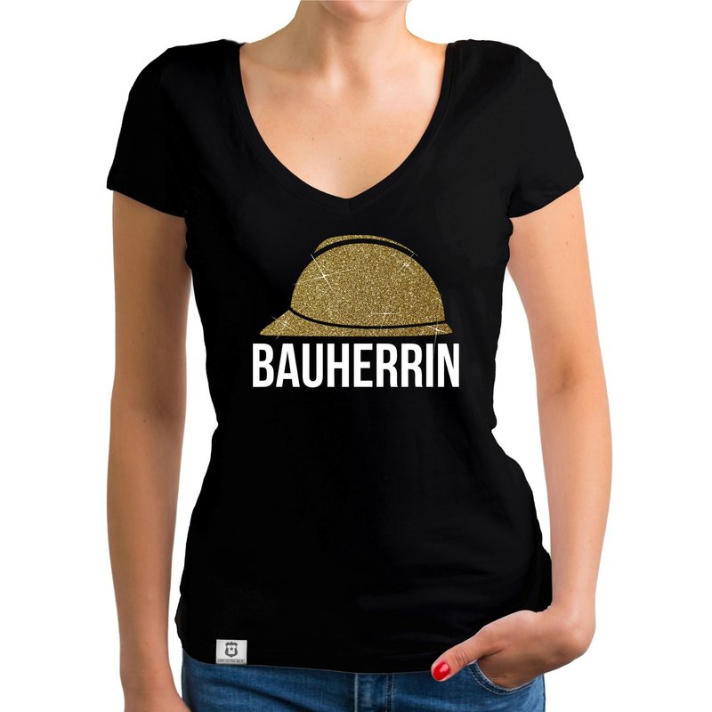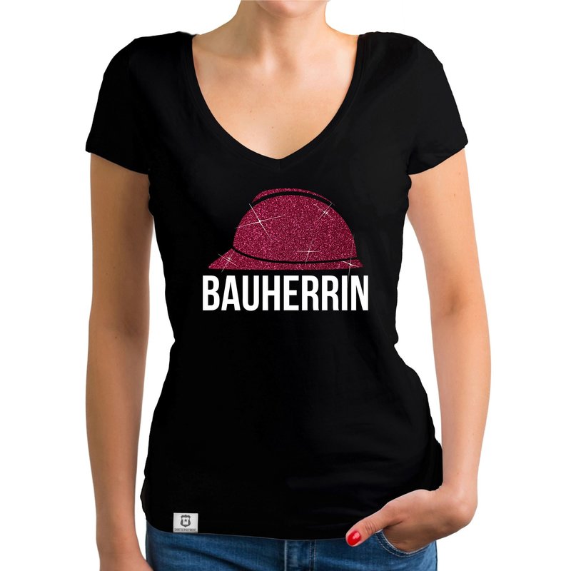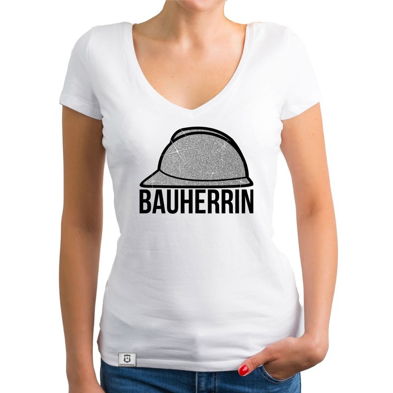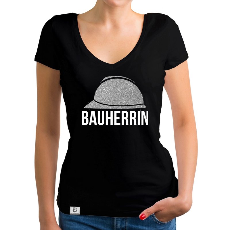 Damen Bauherrin Helm Shirts - Rundhals und V-Neck - Glitzer