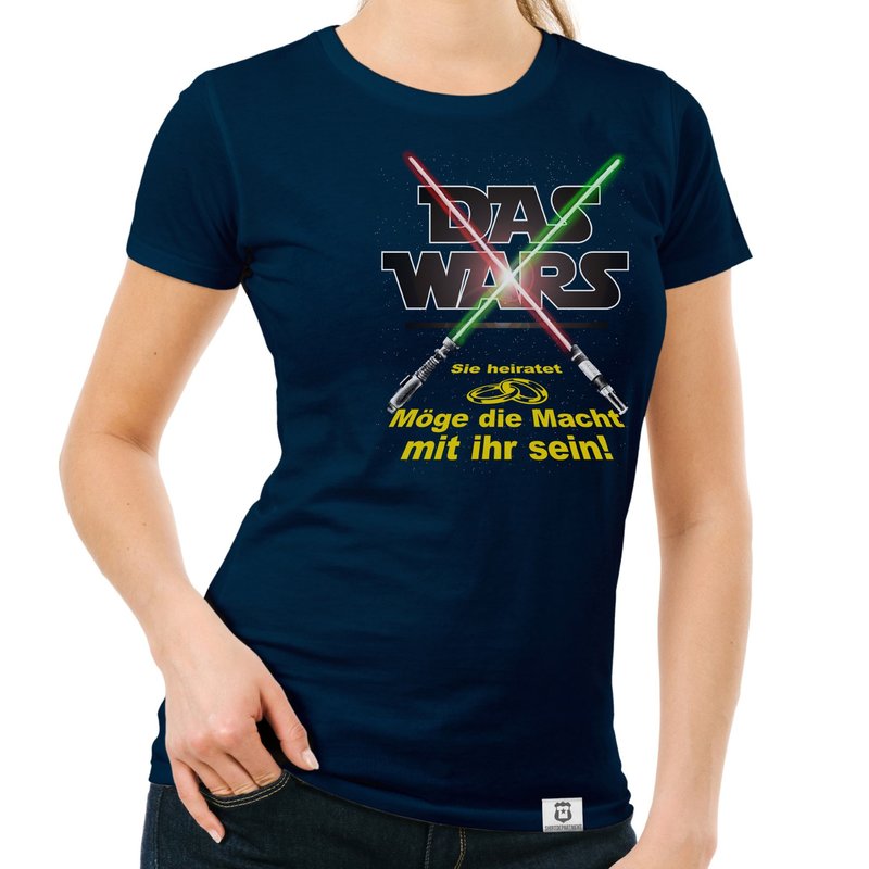 Damen JGA T-Shirt - Das Wars - Möge die Macht mit ihr sein dunkelblau-gelb S
