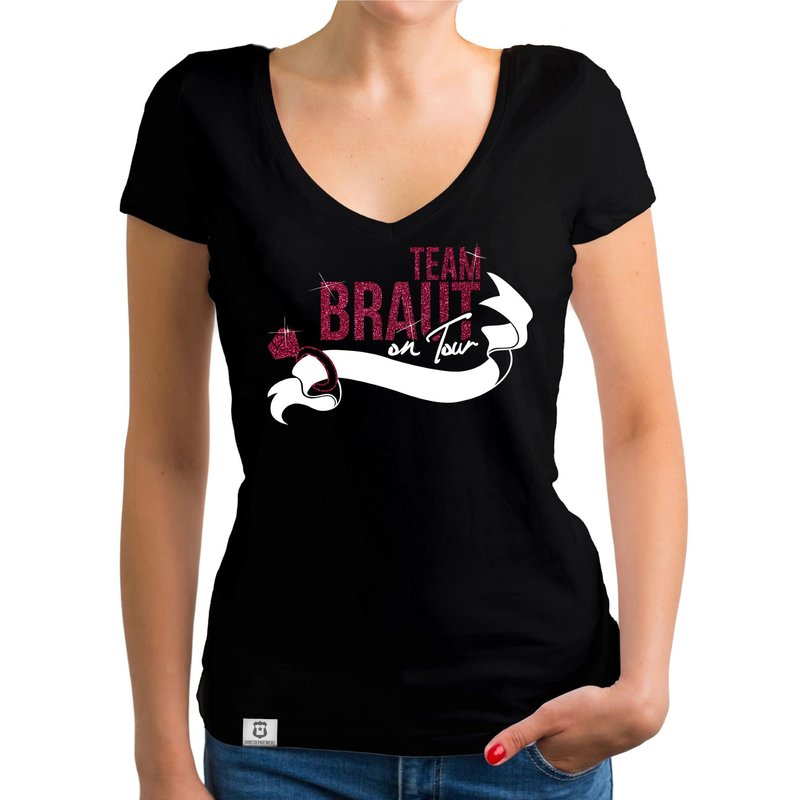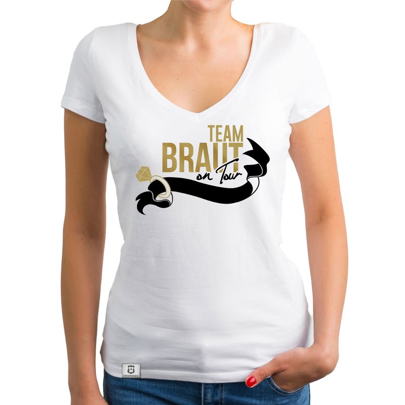 Damen JGA T-Shirt V-Ausschnitt - Team Braut on Tour - Personalisierbar