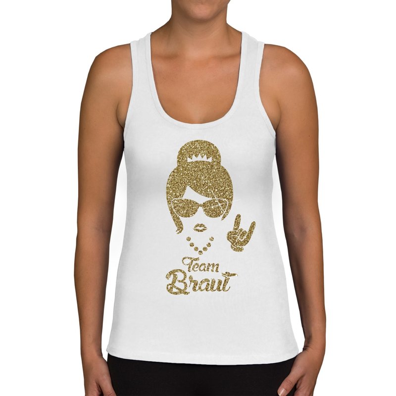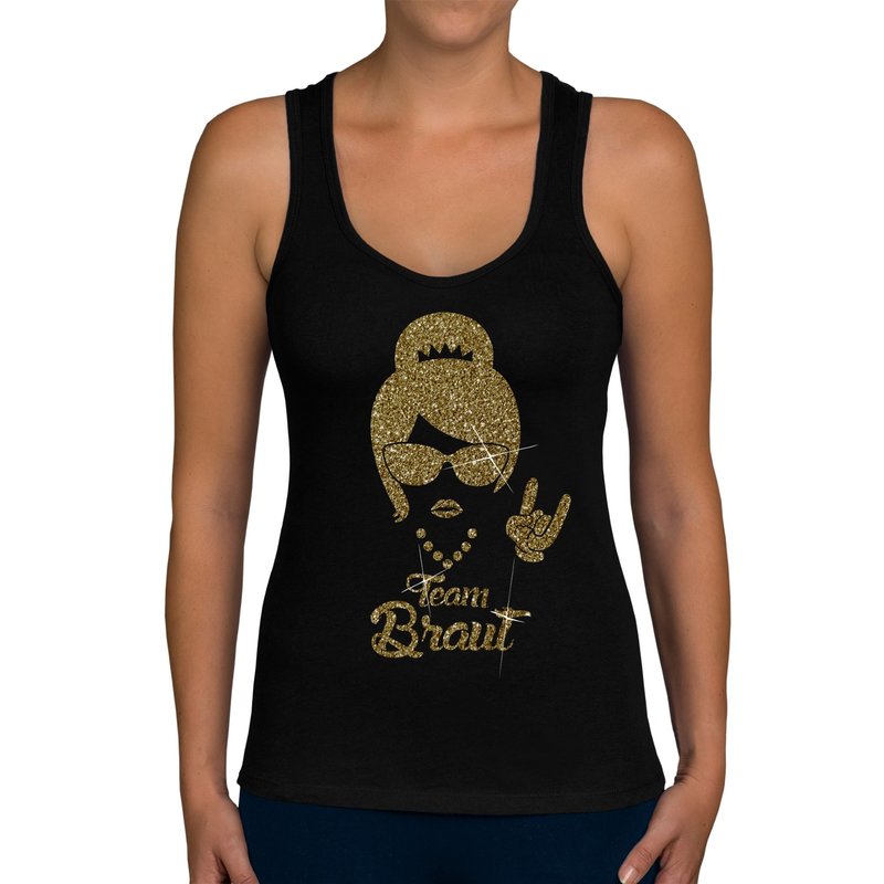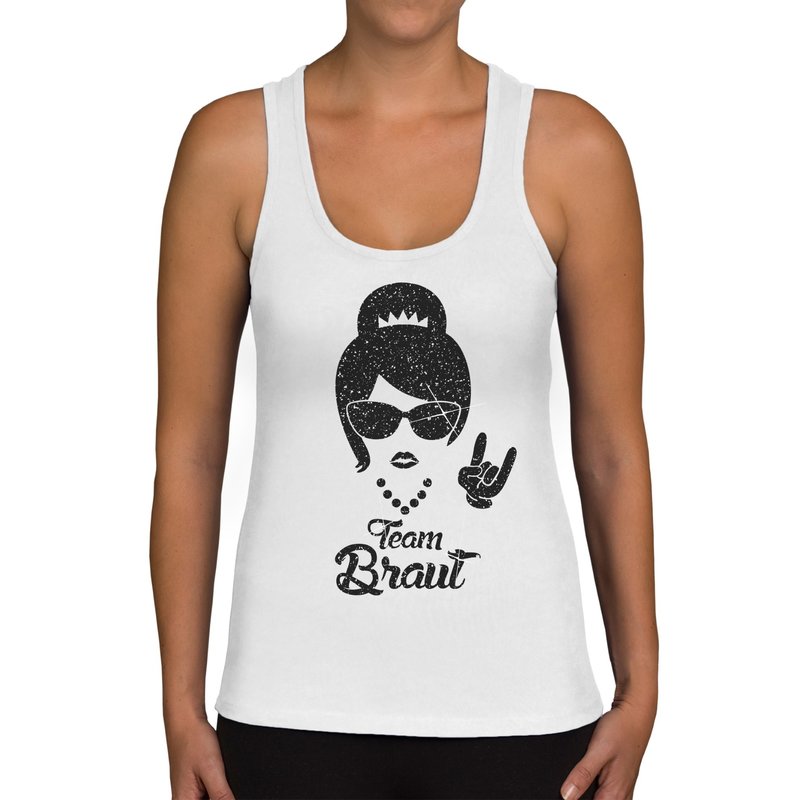 Damen JGA Tank Top - Team Braut - Rock N´Roll weiss-schwarzglitzer XXL