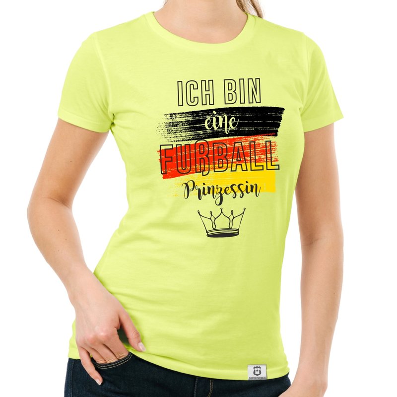 Damen T-Shirt - Ich bin eine Fußball Prinzessin gelb-schwarz XXL