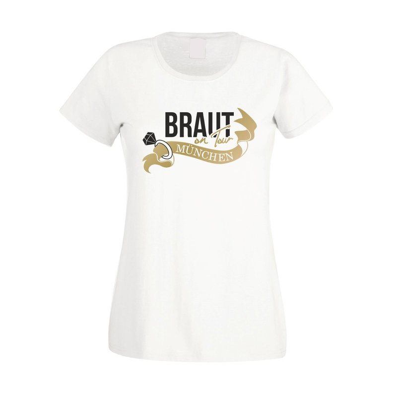 Damen T-Shirt - JGA - Braut on Tour - München weiss-gold XXL