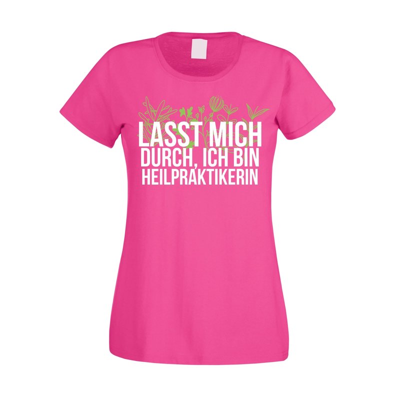 Damen T-Shirt - Lasst mich durch, ich bin Heilpraktikerin fuchsia-apfelgrün XS