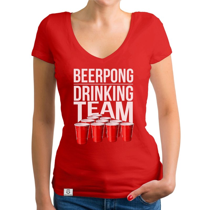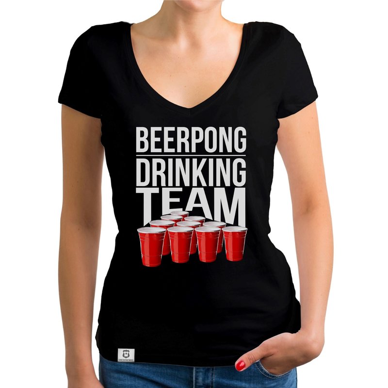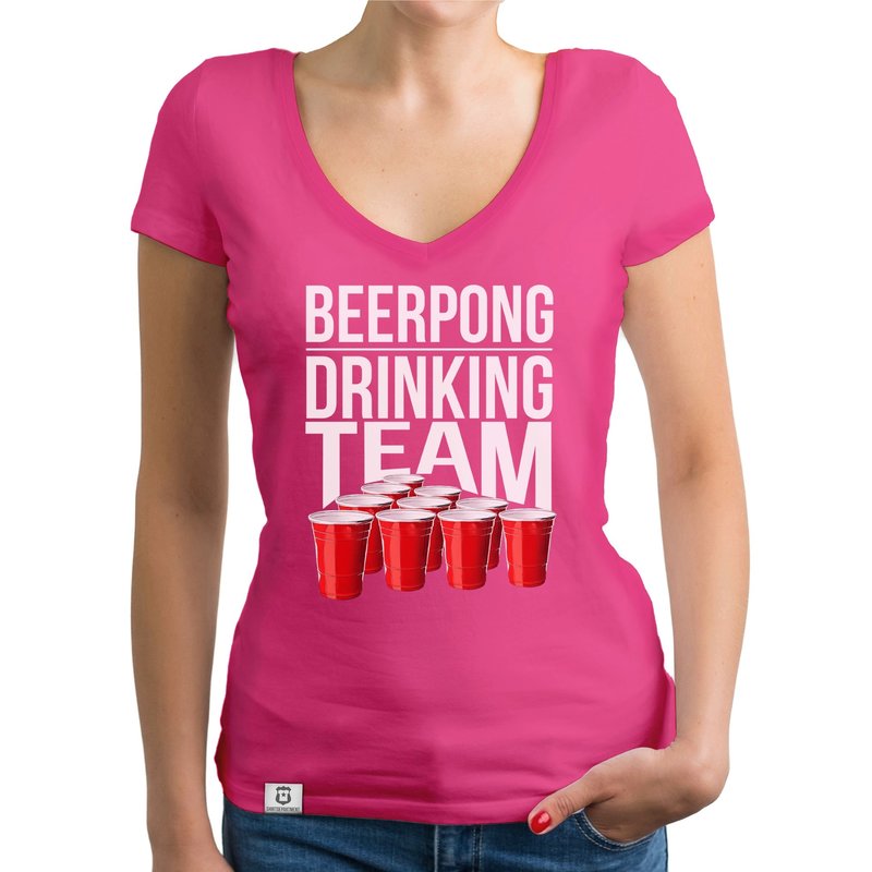 Motiv: Was wäre eine Party ohne eine spannende Runde Beerpong mit Freunden? Und was wäre ein echtes Team ohne passende Teamkleidung? Zeige mit diesem coolen Damen T-Shirt mit V-Ausschnitt, dass du und deine Mitspielerin ein echtes Beerpong Drinking Team seid.