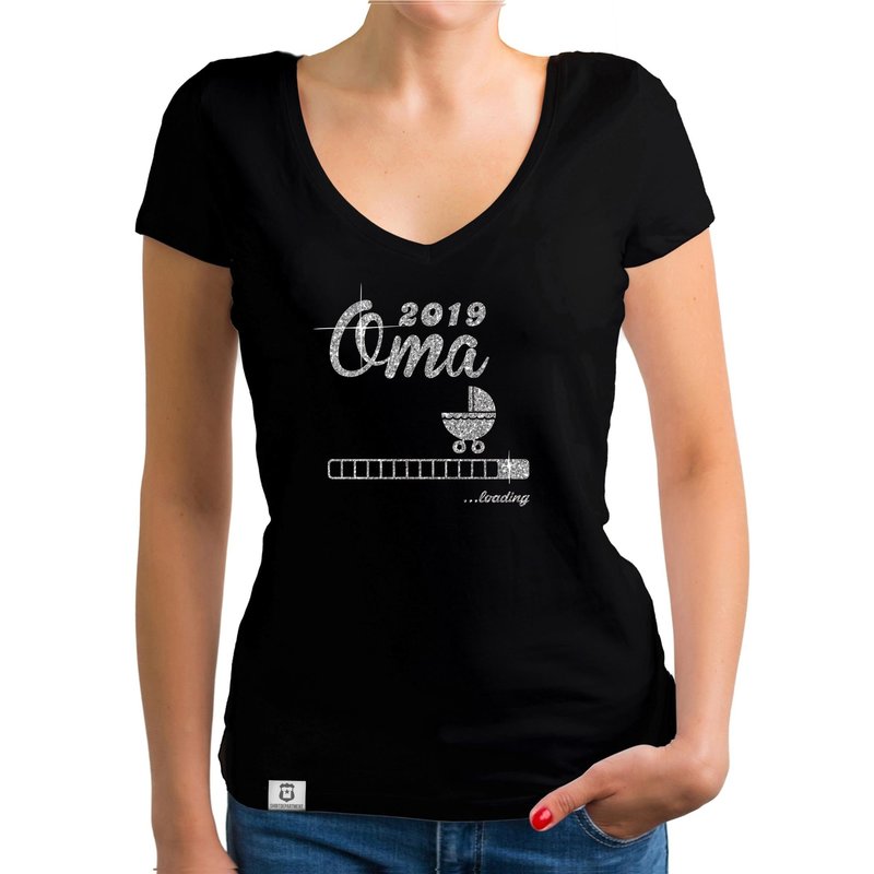 Motiv: Auf diesem Glitzer Shirt mit V-Ausschnitt steht "Oma 2019 loading", verziert mit einem Ladebalken. Das perfekte Glitzer-Shirt um zu zeigen, dass du bald stolze Großmutter wirst! Wähle aus den verschiedenen Farben und den Größen XS - XXL unserer Damen T-Shirts deinen Favoriten.