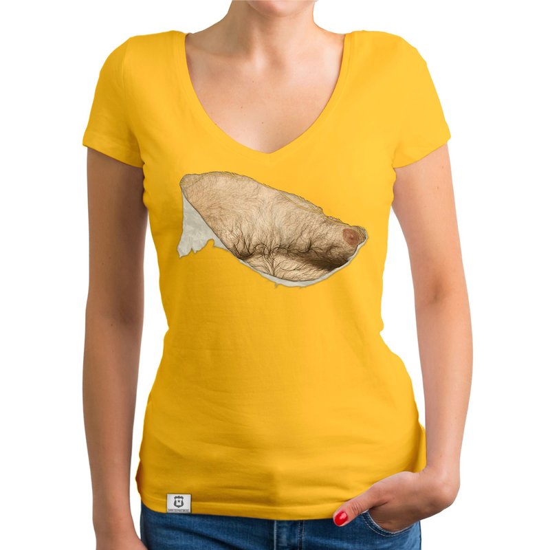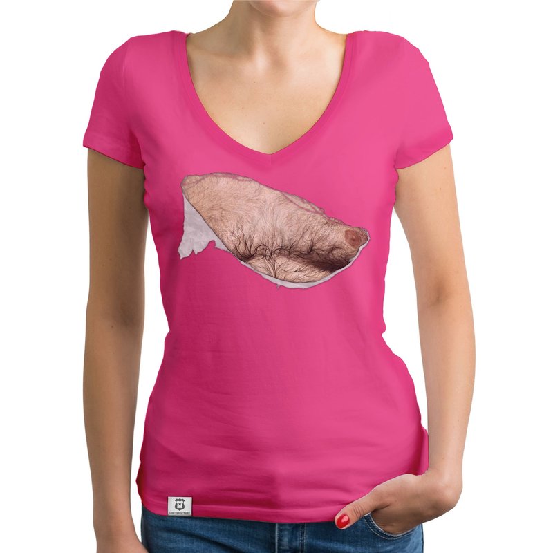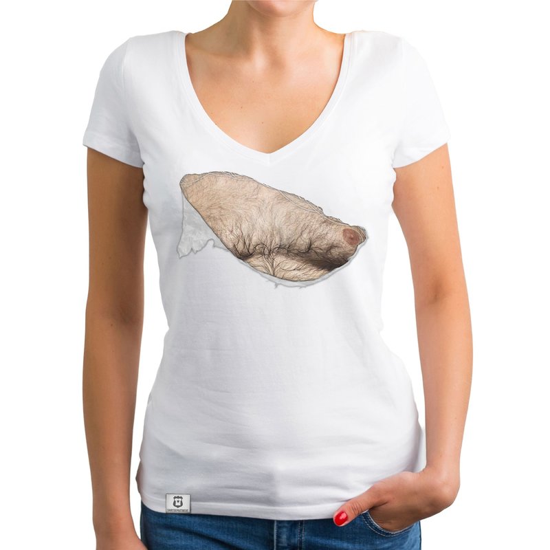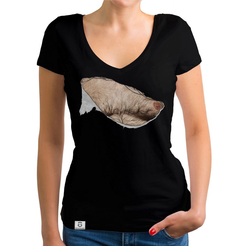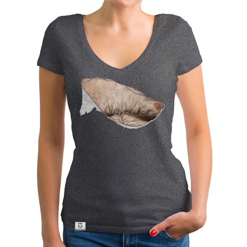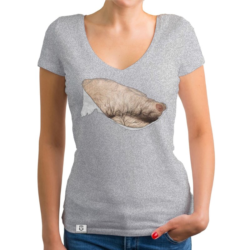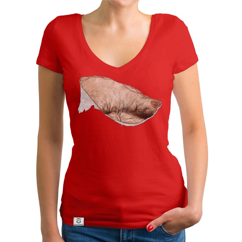 Damen T-Shirt V-Ausschnitt - Haarige Männerbrust