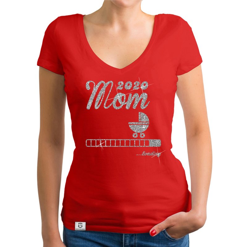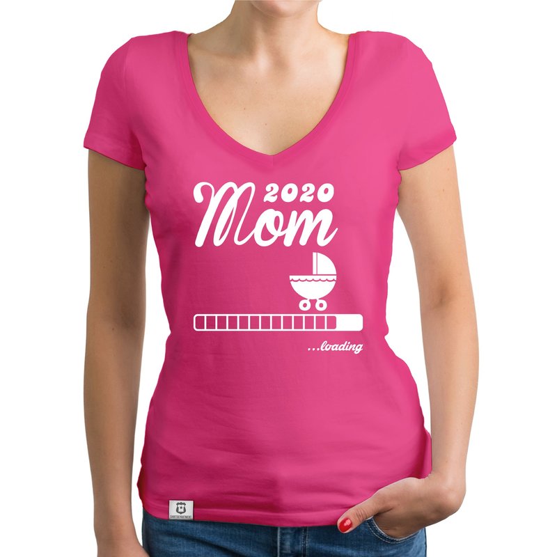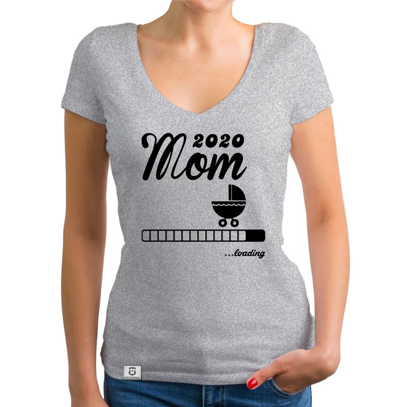 Motiv: Tolles und süßes Damen T-Shirt mit V-Ausschnitt für alle angehenden Mütter! Zeige mit diesem Shirt auf eine coole Art, dass du bald eine stolze Mom sein wirst und lass dein Umfeld daran teilhaben. Natürlich eignet sich das Shirt auch hervorragend als Geschenk zur Schwangerschaft! Darüber hinaus gibt es das "Mom 2020 loading"-Motiv ebenfalls passend für andere Familienmitglieder (Papa, Oma, Opa oder die Geschwister).