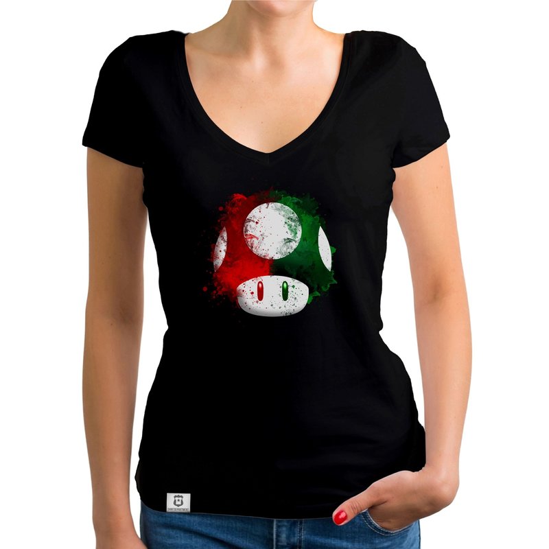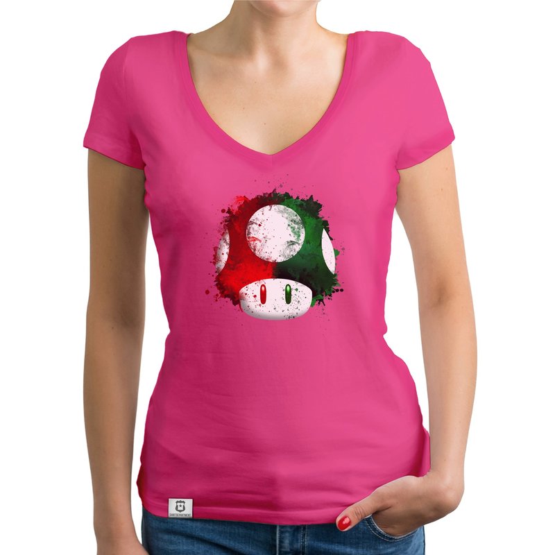 Damen T-Shirt V-Ausschnitt - Super Mario - Pilz
