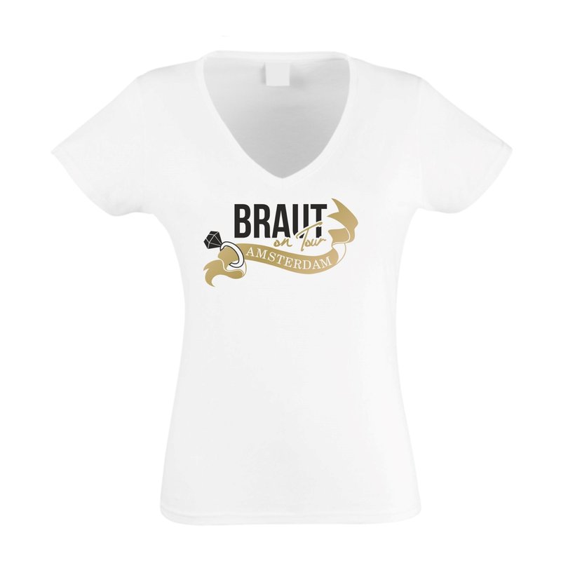 Damen T-Shirt V-Neck - Braut on Tour - Amsterdam - JGA Junggesellinnenabschied