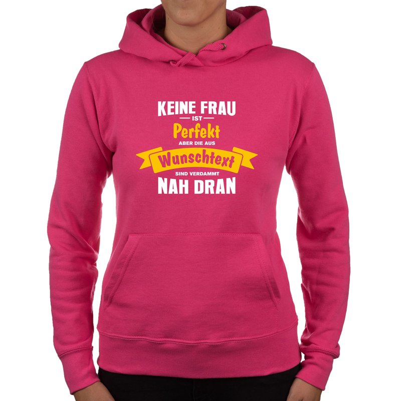 Damen T-Shirt und Hoodie - Keine Frau ist perfekt - Mit wählbaren Farben fuchsia-Hoodie XS