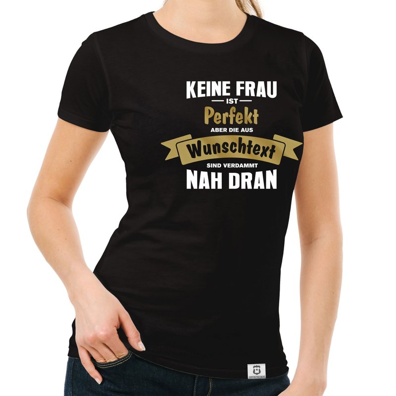Motiv: Gestalte jetzt dein ganz eigenes Shirt bzw. deinen Hoodie mit deinem Wunschtext, Stadt, Bezirk, Namen oder ähnliches. Wähle einfach deine Lieblingsfarbe unserer Artikel aus und vergiss nicht uns deinen Wunschtext und deine Wunschfarbe mitzuteilen! Für die unterschiedlichen Farbkombinationen deines Textes und der Sterne stehen dir folgende Druckfarben zur Verfügung: Gold, Silber, Cyan, Dunkelgrün, Rot, Fuchsia und Gelb. Keine Frau ist perfekt, aber die aus "DEIN WUNSCHTEXT" sind verdammt nah dran!