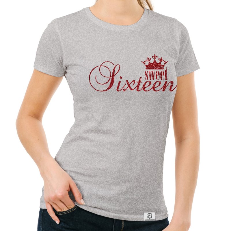Motiv: Bald ist es endlich soweit, du oder deine Freundin, ihr werdet endlich 16 Jahre alt und wollt das gebührend feiern? Dann wähle aus den verschiedenen Farben und den Größen unserer Damen T-Shirts deinen persönlichen Favoriten und deinen Lieblings-Aussschnitt! Mit diesem Shirt ist euch die Aufmerksamkeit auf eurer Party garantiert - Jetzt glitzert nur ihr!