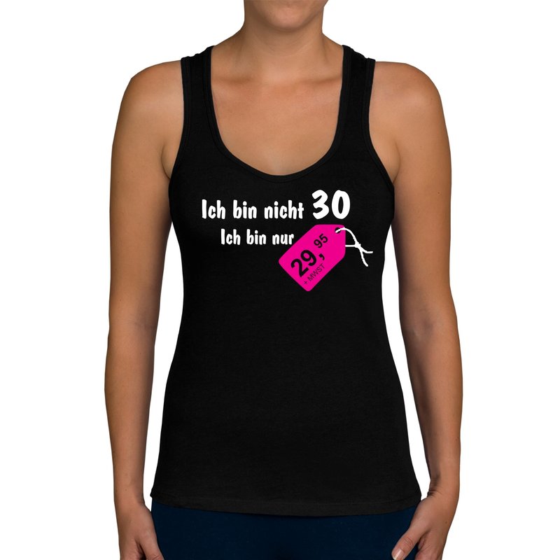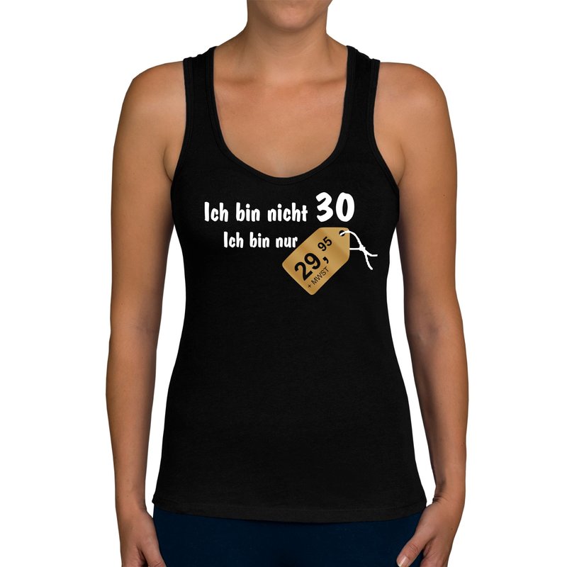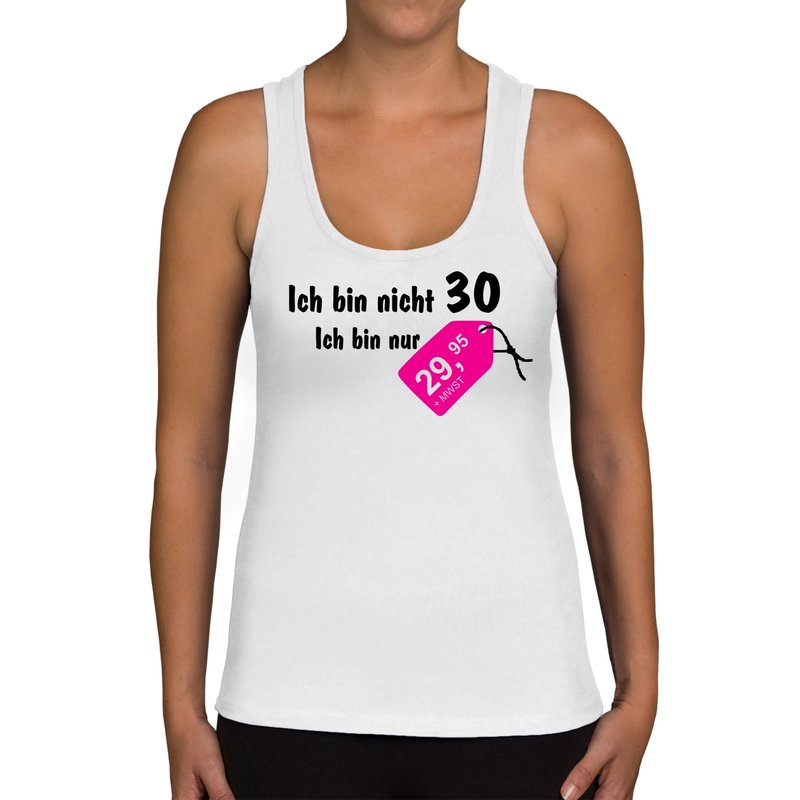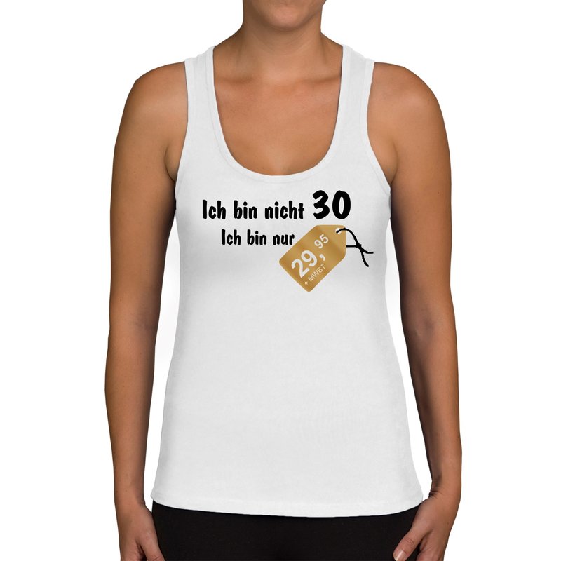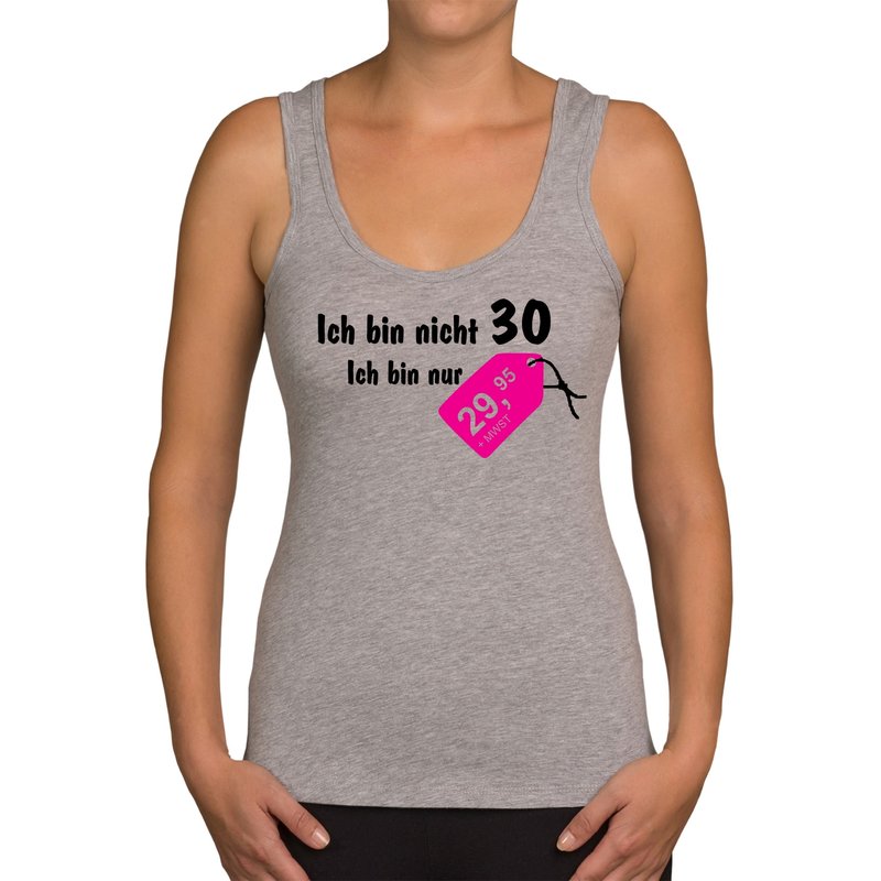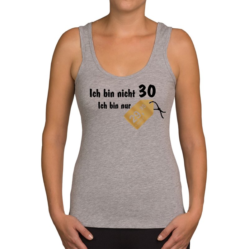 Motiv: Tolles und witziges Damen Tank Top zum 30. Geburtstag. Für alle Frauen, die ihren runden Geburtstag mit einem Augenzwinkern feiern oder als Geschenkidee, um dem Geburtstagskind zum Ehrentag eine Freude zu bereiten und zu zeigen, dass 30 auch nur eine Zahl ist.
