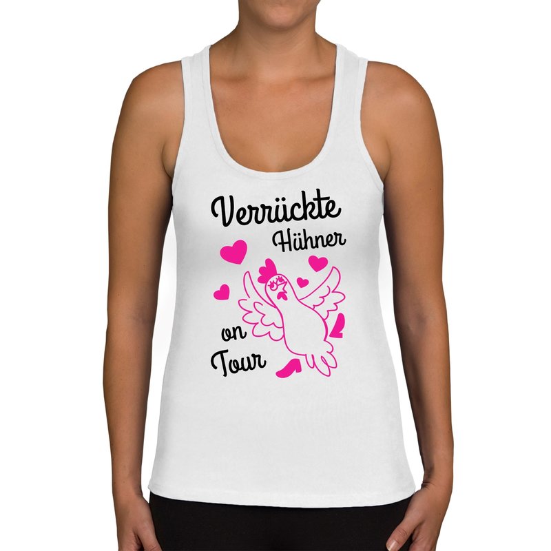 Damen Tank Top - Verrückte Hühner on Tour weiss-schwarz XXL