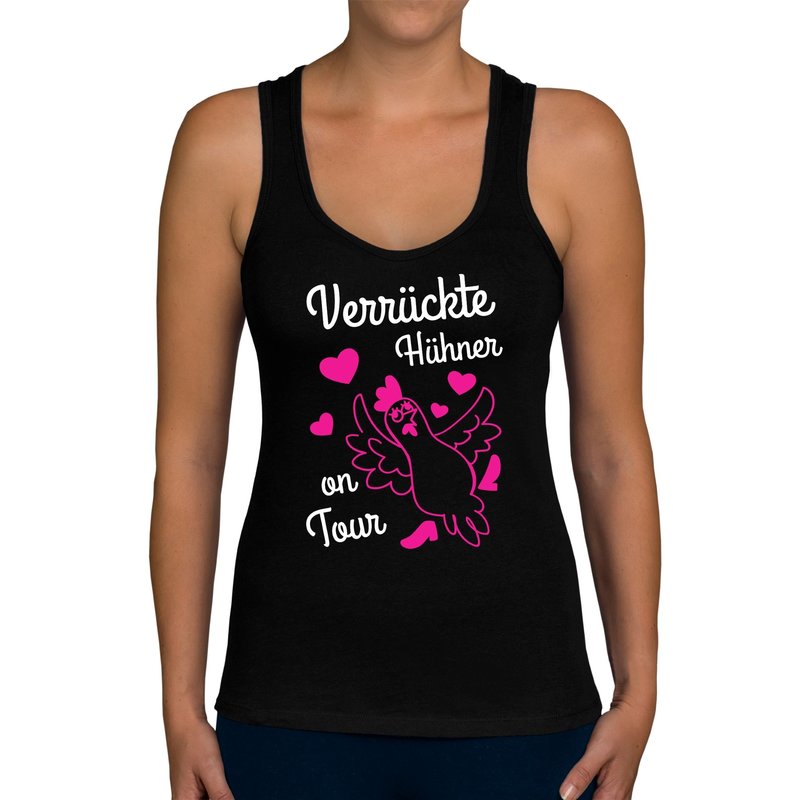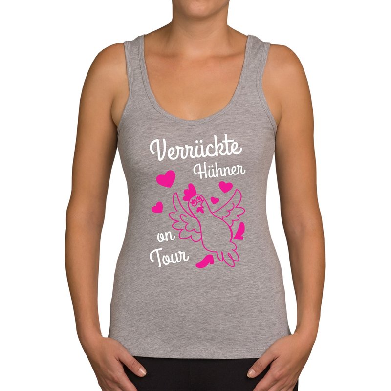 Motiv: Du und deine Freundinnen planen demnächst eine gemeinsame Unternehmung und ihr braucht noch ein einheitliches Outfit, damit die Leute um euch herum auch sofort erkennen, dass ihr eine gemeinsame und coole Gruppe seid? Dann ist dieses Damen Tank Top eine ideale Lösung! Egal ob Junggesellinnenabschied, Urlaub oder Wochenendausflug - Wähle einfach aus den Größen von XS - 2XL die bevorzugte Farbe und zeigt, dass eine Crew von verrückten Hühnern on Tour ist.