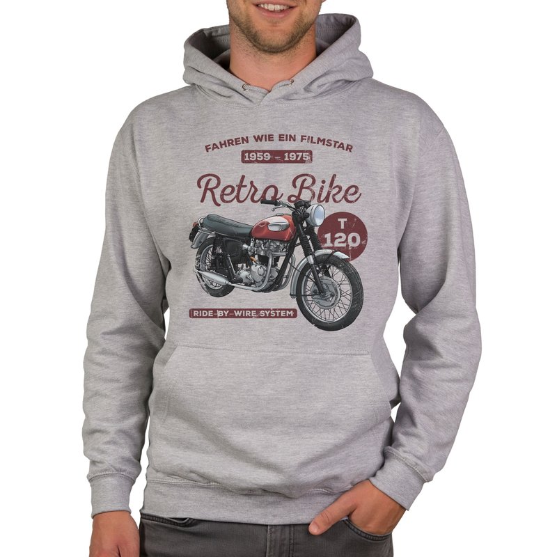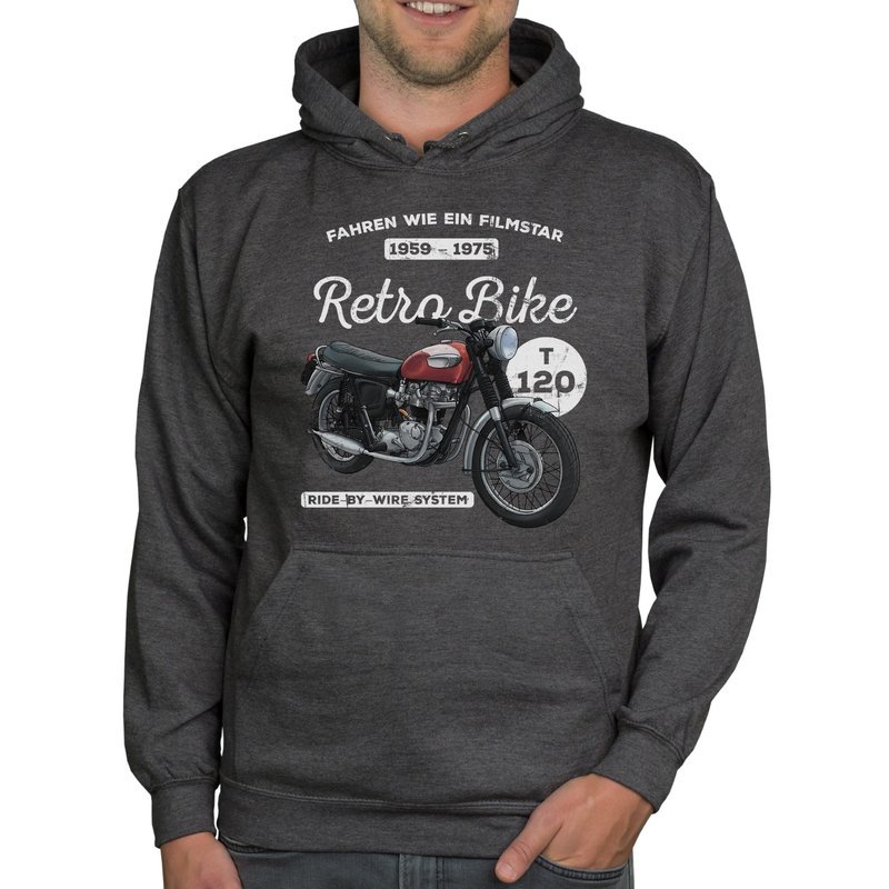 Herren Hoodie - Retro Bike dunkelgrau-rot XS