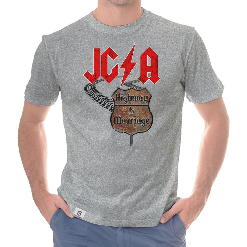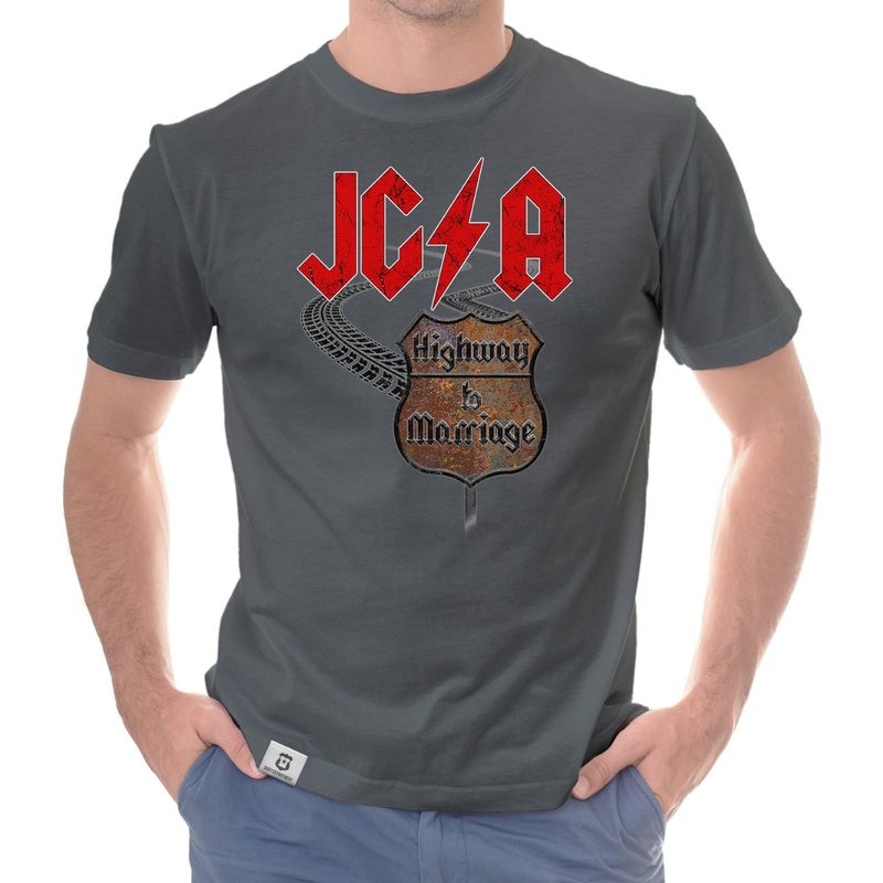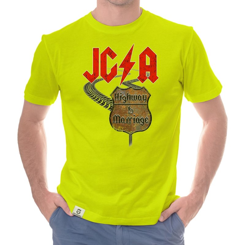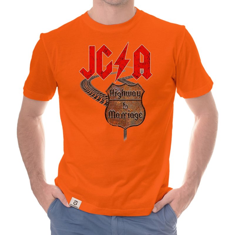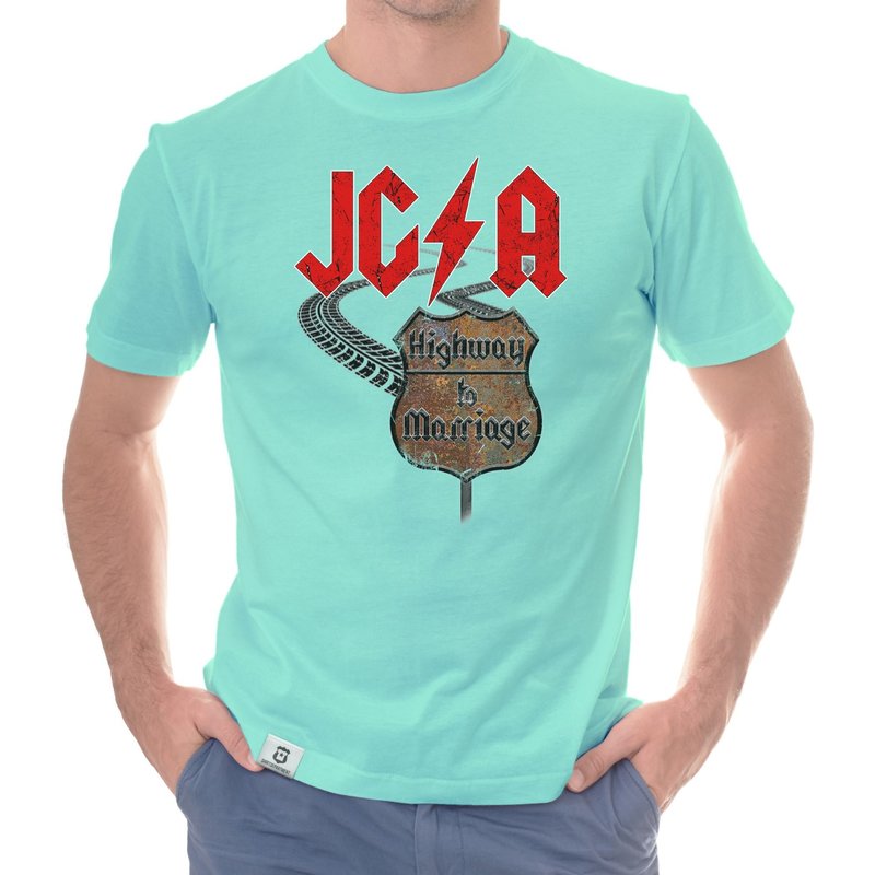 Motiv: Verbringt einen unvergesslichen JGA, ganz im Stile des Rock'n'Rolls! Wähle aus den verschiedenen Farbvarianten und den Größen S - 5XL unserer Herren T-Shirts deinen persönlichen Favoriten! Rock on - Der Highway to Marriage steht euch offen!