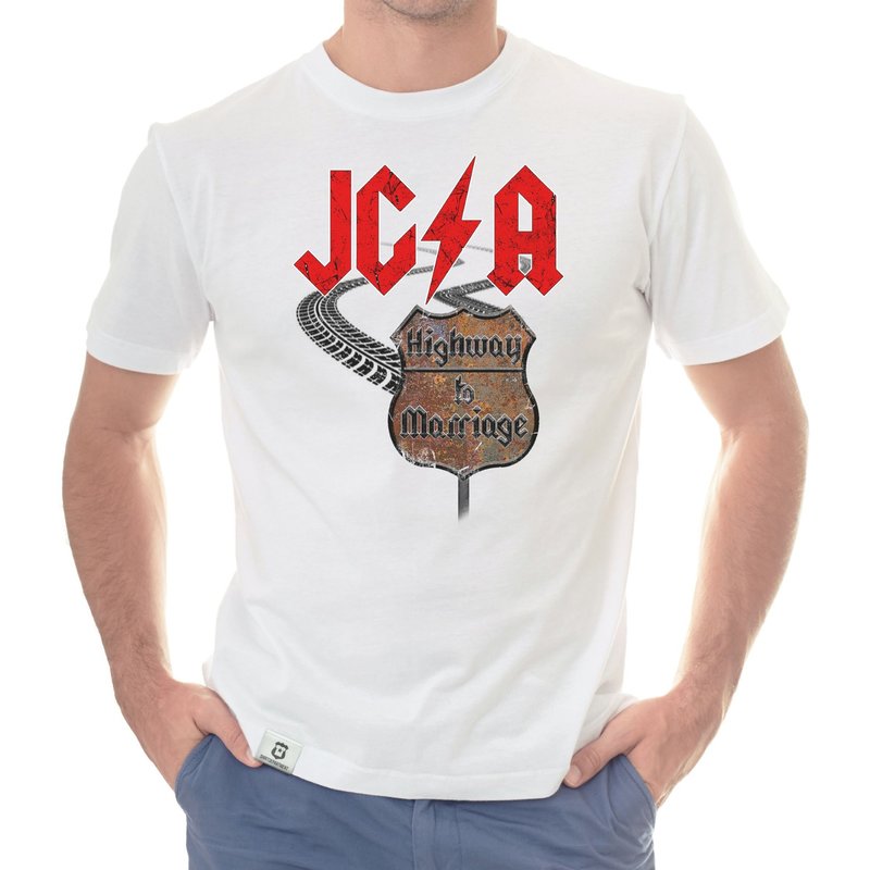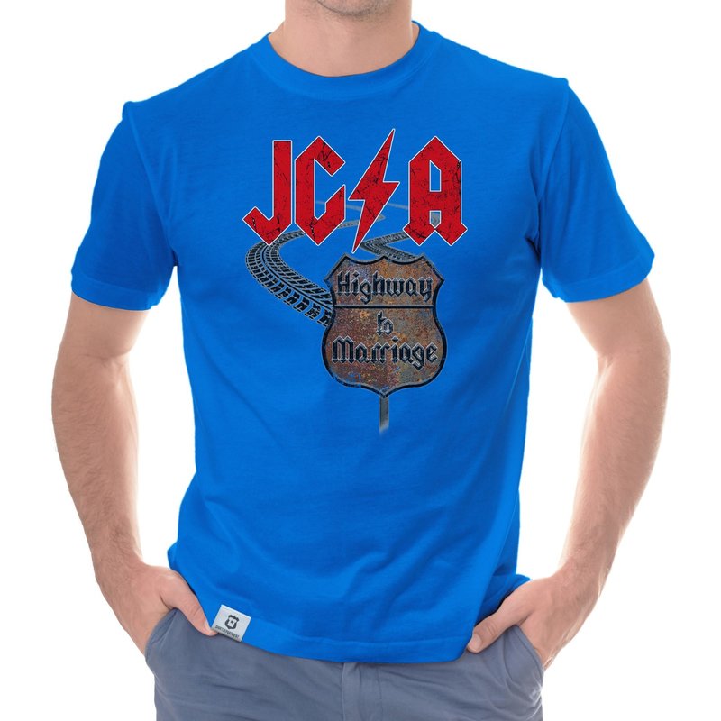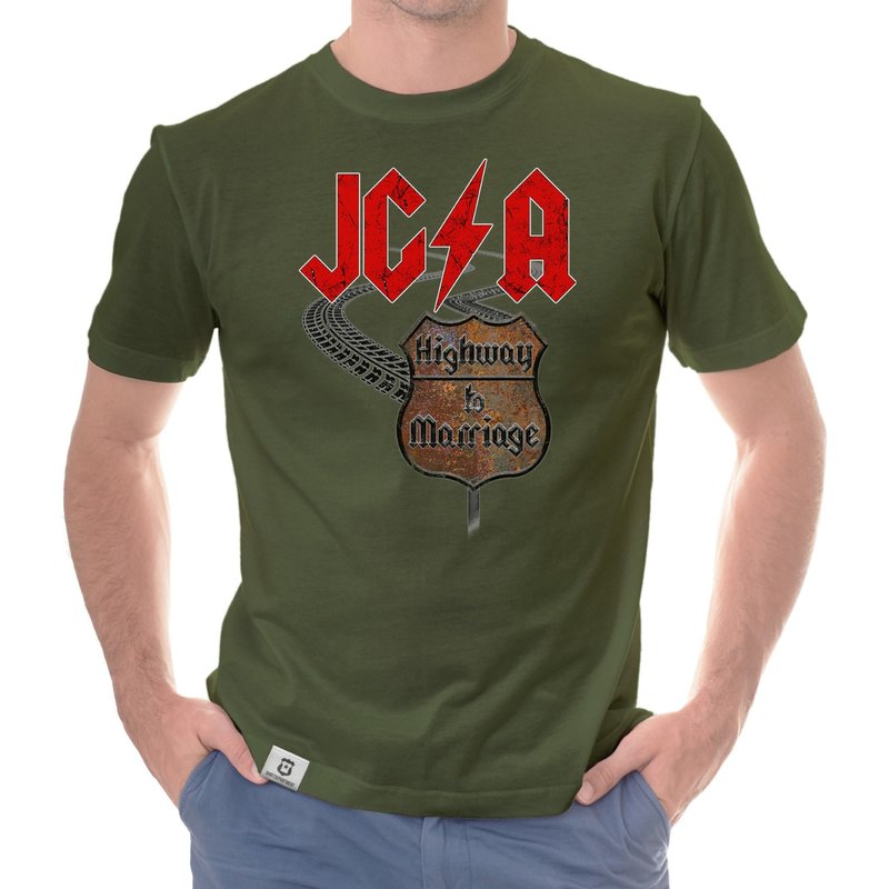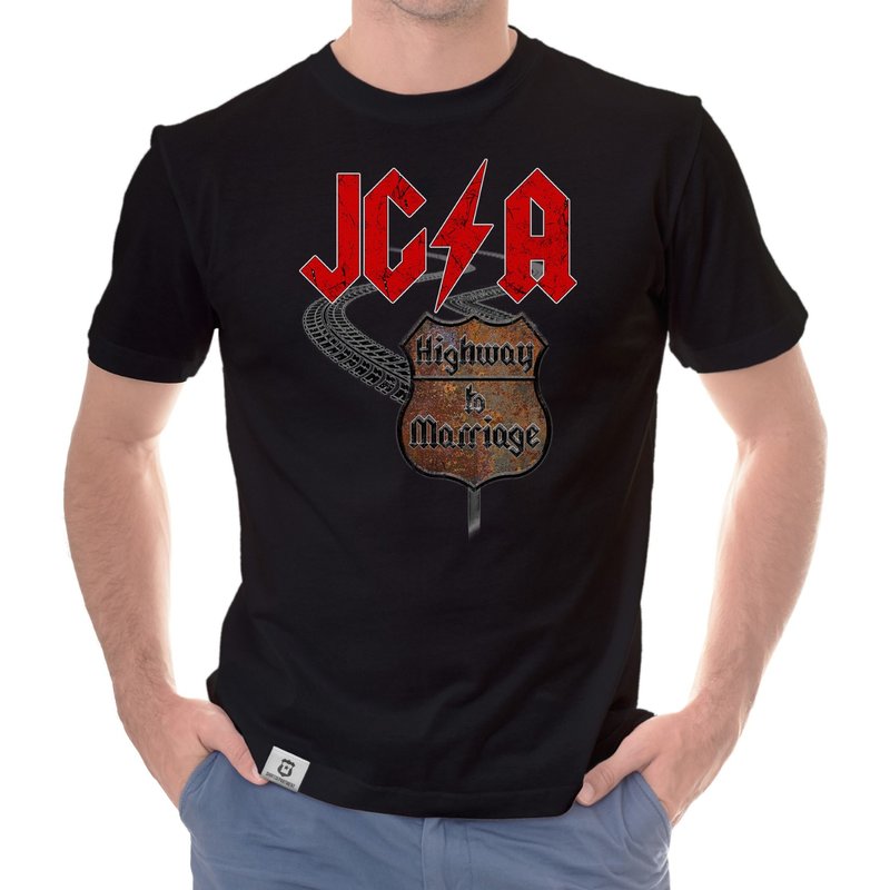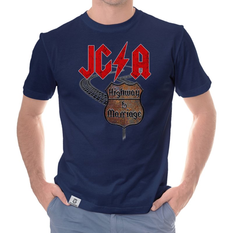 Motiv: Verbringt einen unvergesslichen JGA, ganz im Stile des Rock'n'Rolls! Wähle aus den verschiedenen Farbvarianten und den Größen S - 5XL unserer Herren T-Shirts deinen persönlichen Favoriten! Rock on - Der Highway to Marriage steht euch offen!