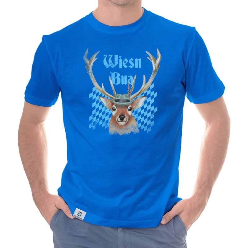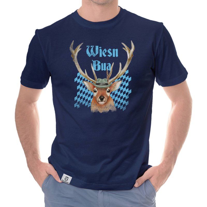 Herren Oktoberfest T-Shirt - Wiesn Bua dunkelblau-himmelblau S