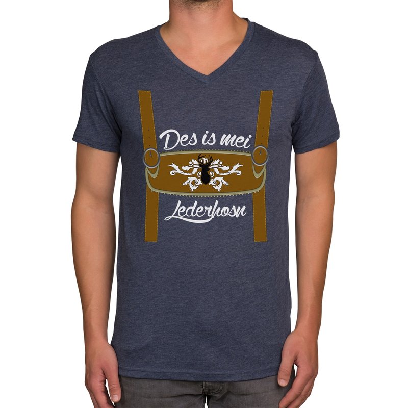 Herren Oktoberfest T-Shirts - Des is mei Lederhosn! - Männer Shirt mit Rundhals- und V-Ausschnitt V-Neck dunkelblau-weiss XXXL