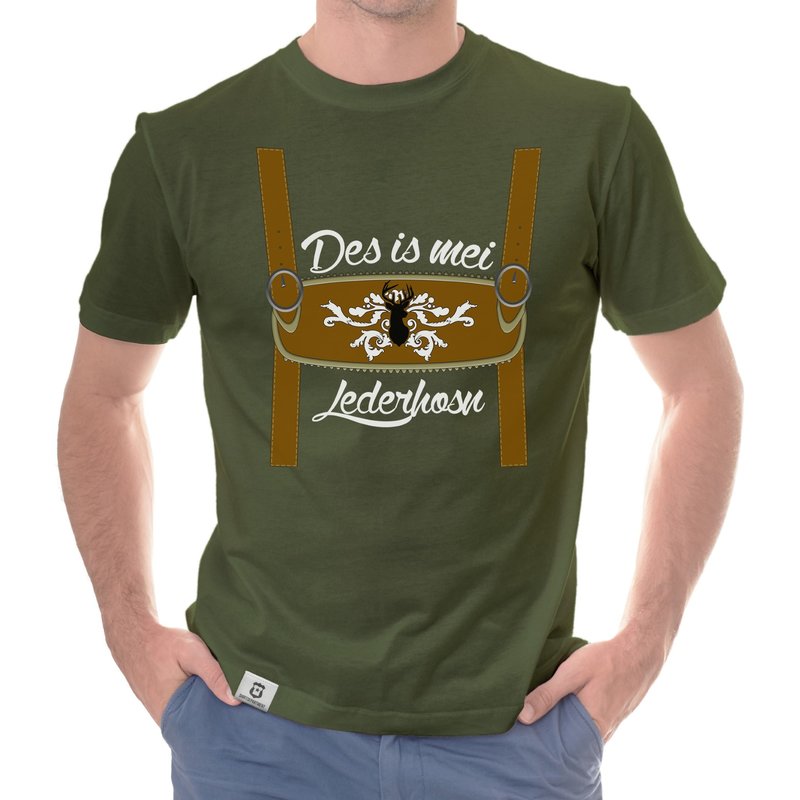 Herren Oktoberfest T-Shirts - Des is mei Lederhosn! - Männer Shirt mit Rundhals- und V-Ausschnitt