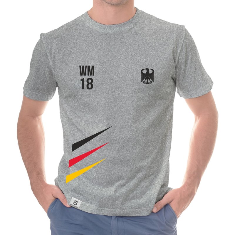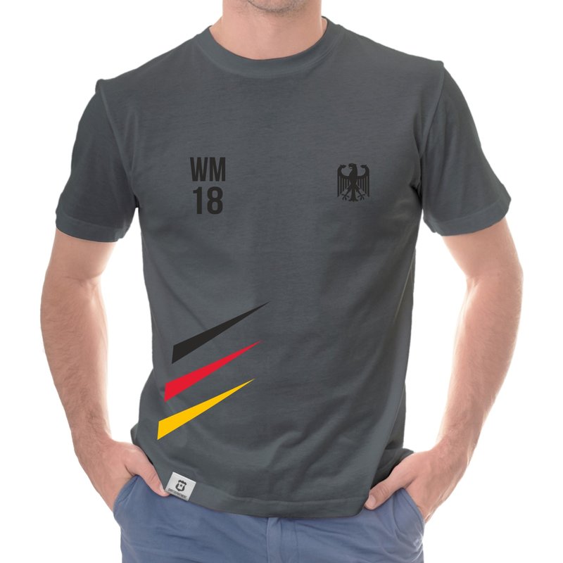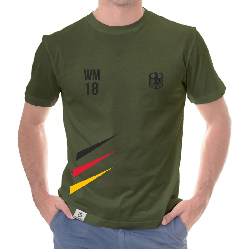Motiv: Brauchst du noch das geeignete Shirt für die bevorstehenden Fußball-Abende? Dann haben wir hier das perfekte Deutschland-Shirt für dich parat! Wähle aus den verschiedenen Farbvarianten und den Größen S - 5XL unserer Herren T-Shirts deinen persönlichen Favoriten und personalisiere dein ganz eigenes WM-Shirt.