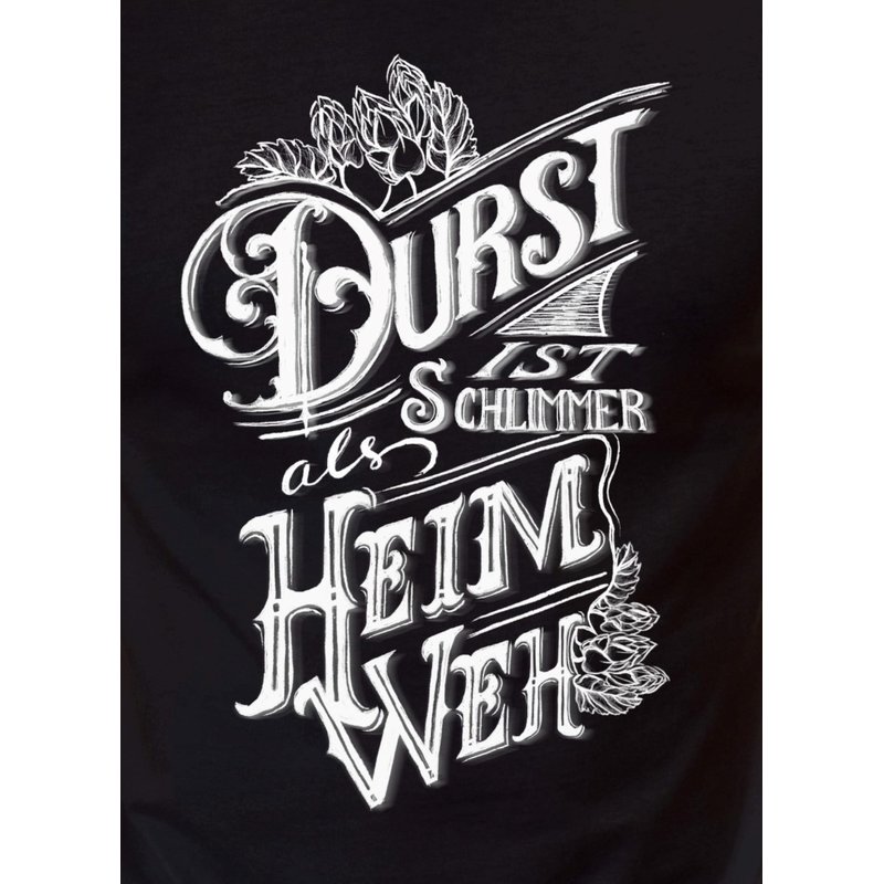Wähle einfach aus den Größen S - 5XL deinen farblichen Favoriten aus und zeige deinen Mitmenschen, dass du das ganze mit einem Augenzwinkern betrachtest, denn: Durst ist schlimmer als Heimweh