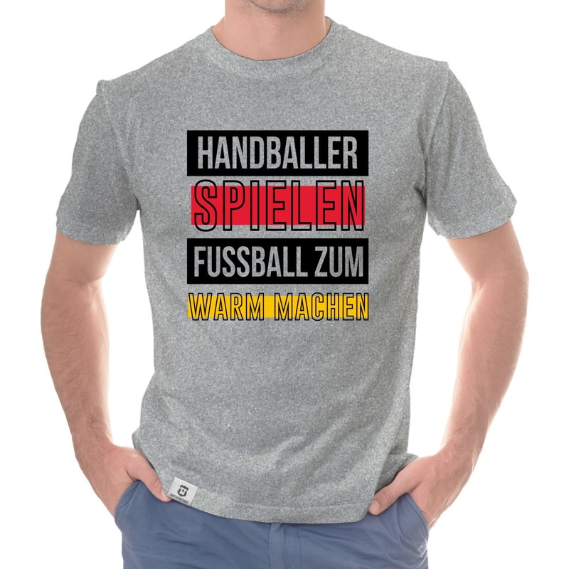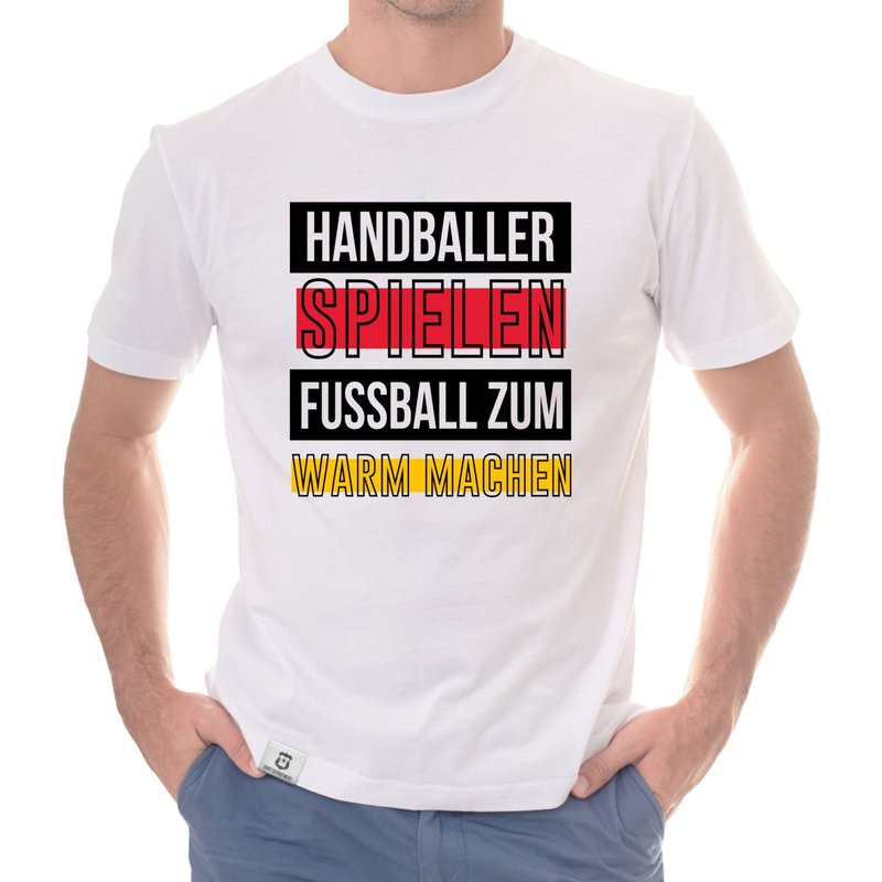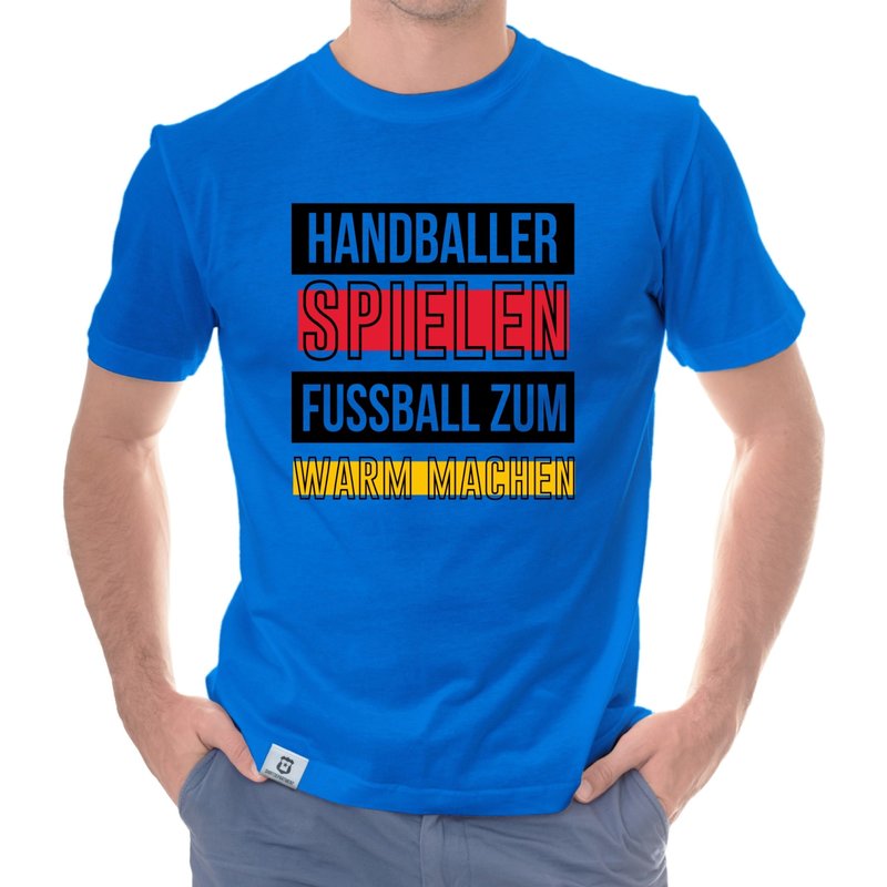 Motiv: Du bist ein überzeugter Handballer und kannst den ganzen Fußball-Trubel und WM-Hype nicht nachvollziehen? Dann haben wir das passende Fun Shirt für dich! Wähle einfach deine Lieblingsfarbe und eine Größe von S - 5XL und zeige, dass Fußball für Handballer lediglich zum Warmmachen gut ist.