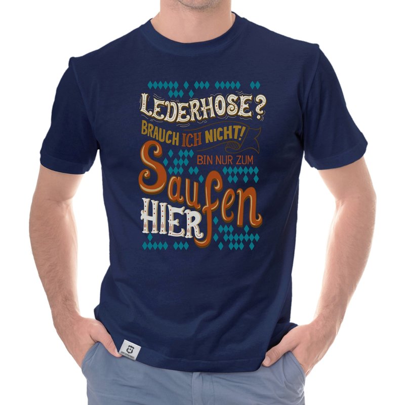 Herren T-Shirt - Lederhose - Ich bin nur zum Saufen hier dunkelblau-braun S