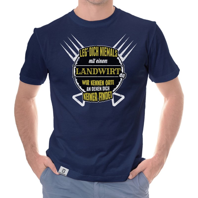 Herren T-Shirt - Leg dich niemals mit Landwirten an dunkelblau-weiss S