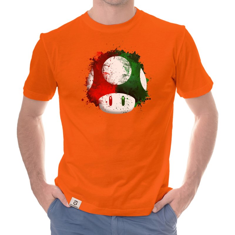 Motiv: So ziemlich jeder dürfte in seiner Kindheit oder auch heute noch mit dem kleinen italiensichen Klempner durch die Gegend gehüpft sein. Und was wäre Mario ohne die Unterstützung der roten und günen Pilze gewesen? Zeige mit diesem stylischen T-Shirt, dass du ein echter Fan dieses Videospiel-Klassikers bist.