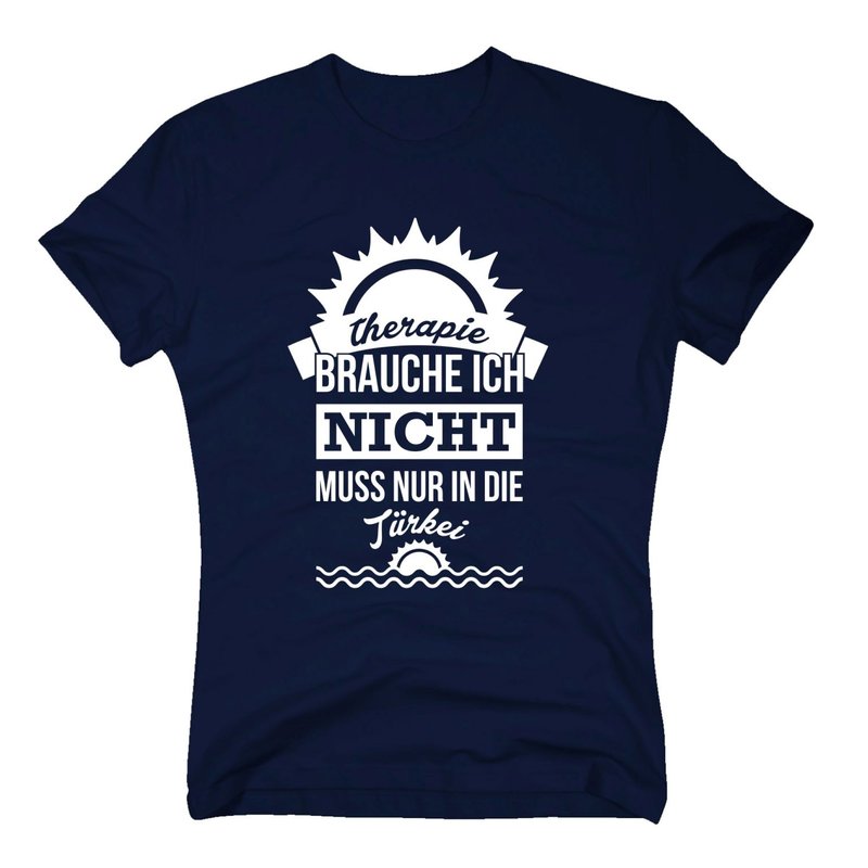 Herren T-Shirt - Therapie brauche ich nicht - muss nur in die Türkei dunkelblau-weiss S
