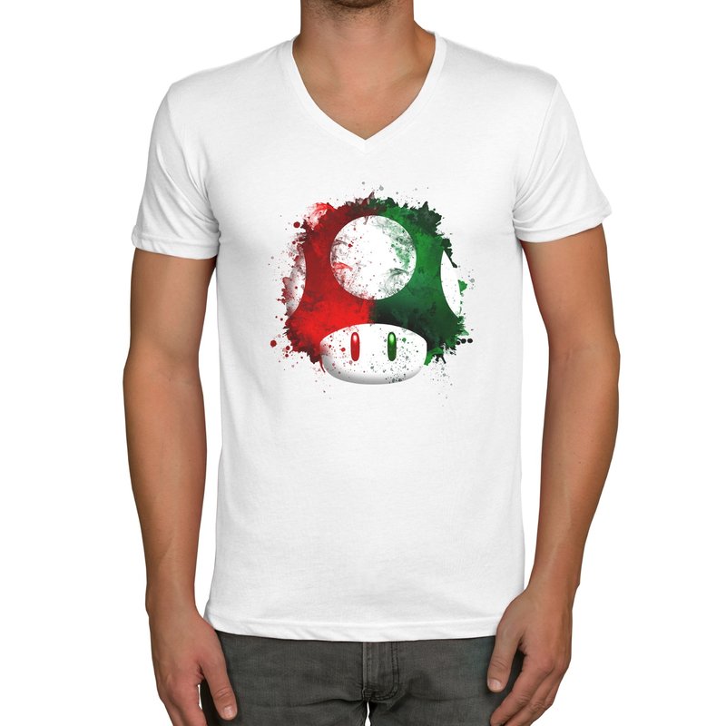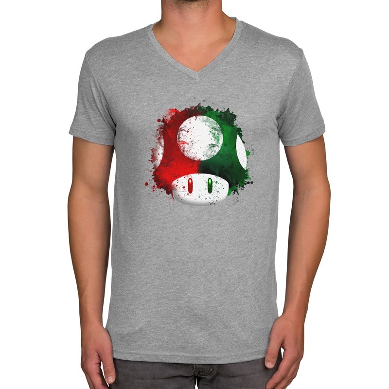 Herren T-Shirt - V-Ausschnitt - Super Mario - Pilz
