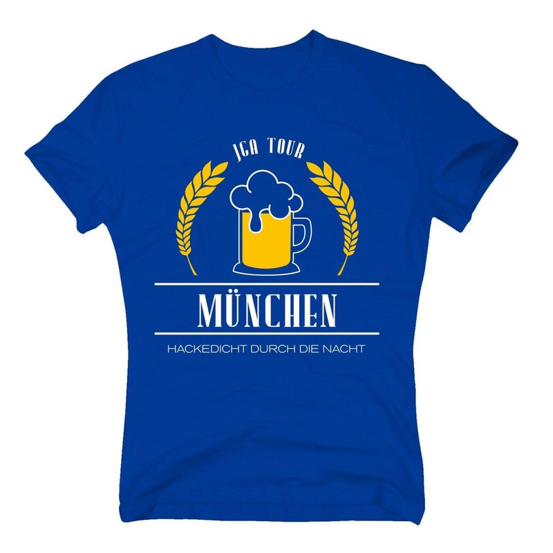 Motiv: Auf diesem München - JGA Tour Herren T-Shirt steht JGA Tour - München - Hackedicht durch die Nacht. Der Junggesellenabschied eures Freundes steht vor der Tür? Dann haben wir das perfekte Crew Shirt für euch am Start! Wählt aus den verschiedenen Farbkombinationen und den Größen S - 5XL unserer Herren T-Shirts euren persönlichen Favoriten und macht München unsicher.