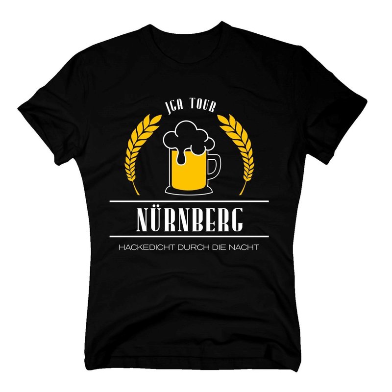 Motiv: Auf diesem Nürnberg - JGA Tour Herren T-Shirt steht JGA Tour - Nürnberg - Hackedicht durch die Nacht. Der Bräutigam kommt ursprünglich auch Nürnberg? Dann sollte auch sein Junggesellenabschied dort stattfinden. Wir bieten euch das passende Shirt für diesen Anlass! Wählt aus den verschiedenen Farbkombinationen und den Größen S - 5XL unserer Herren T-Shirts euren persönlichen Favoriten.