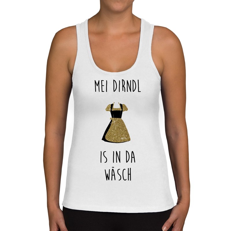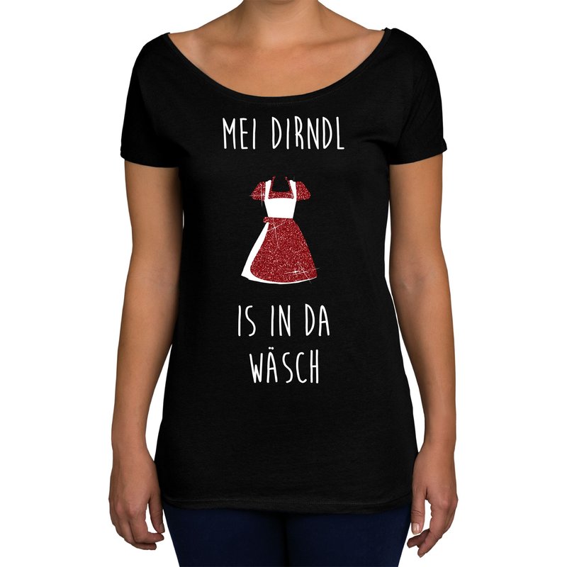 Oktoberfest Damen Shirts - U-Boot Ausschnitt und Tank Top - Mei Dirndl is in da Wäsch - Glitzer