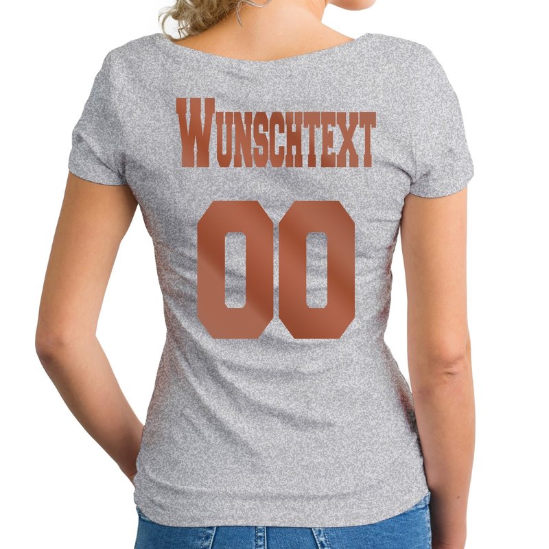 Personalisierbare Damen und Herren T-Shirts - Mit deinem Wunschtext und Nummer Damen V-Neck - dunkelgrau XS