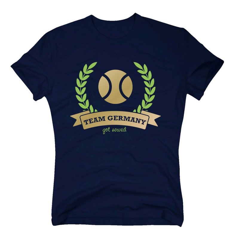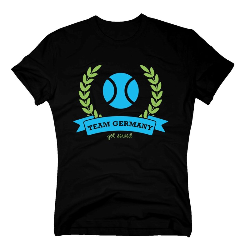Motiv: Auf diesem Motiv steht „Team Germany – Get served“. In einem Lorbeerkranz ist auf diesem Motiv ein Tennisball abgebildet. Das passende T-Shirt für jeden Tennis-Spieler.