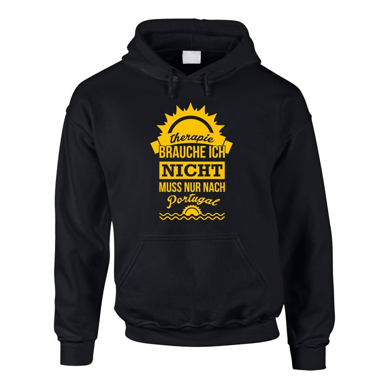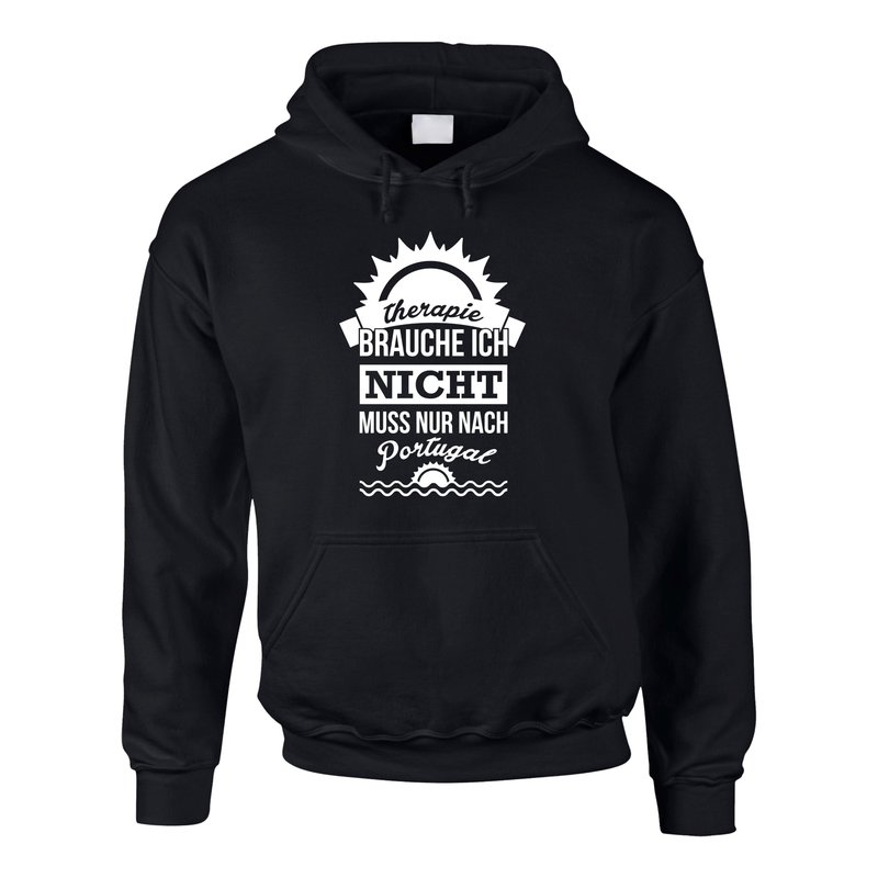 Motiv: Auf diesem Urlaubs-Hoodie für Herren steht "Therapie brauche ich nicht - muss nur nach Portugal". Du benötigst dringend mal wieder Urlaub und würdest gerne mal wieder in deine zweite Heimat? Dann wähle aus den verschiedenen Farben und den Größen XS - 5XL unserer Herren Hoodies deinen Favoriten.