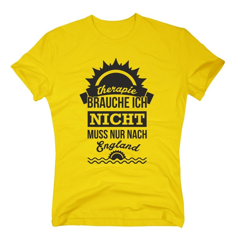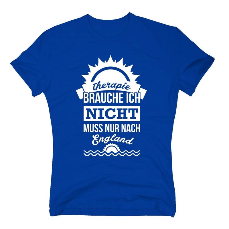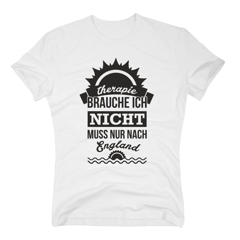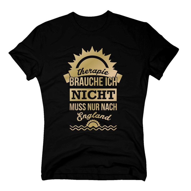 Motiv: Auf diesem Herren T-Shirt steht Therapie brauche ich nicht - muss nur nach England. Du hast eine ganze Weile in England gelebt oder bist einfach ein Fan dieses tollen Landes? Dann wähle aus den verschiedenen Farbvarianten und den Größen S - 5XL unserer Herren T-Shirts deinen persönlichen Favoriten.
